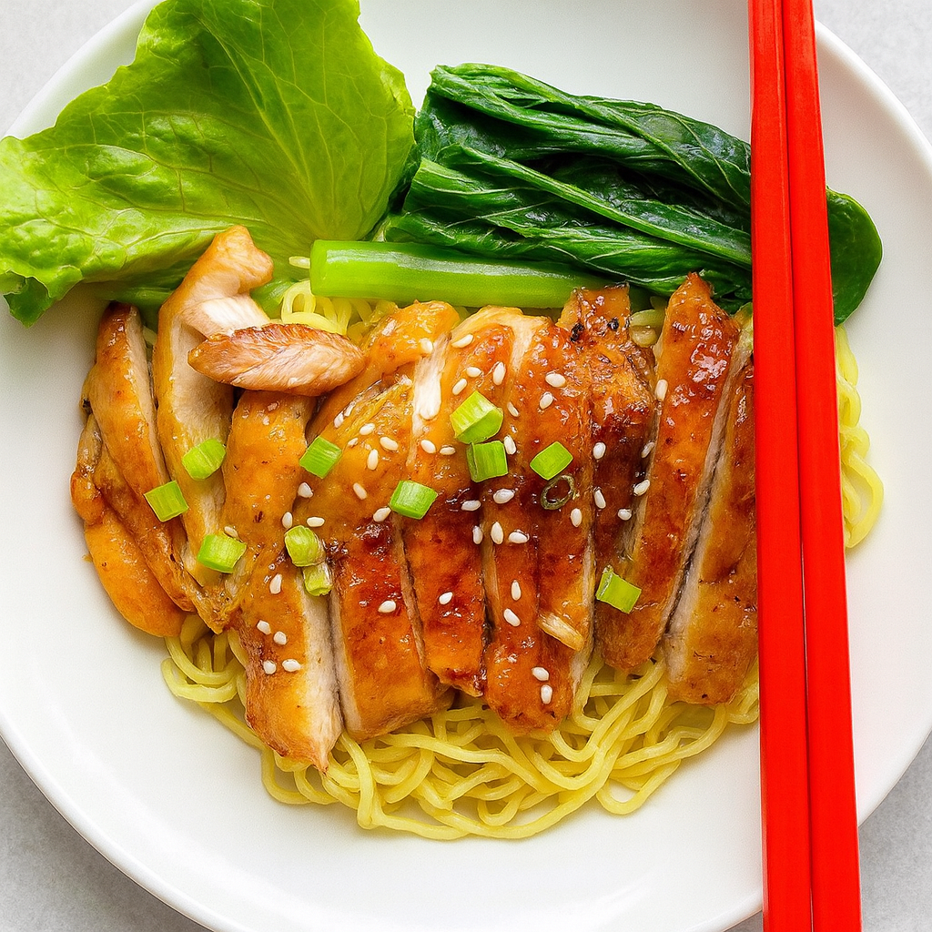 Teriyaki mit Nudeln – zart gebratenes Fleisch oder Tofu in aromatischer japanischer Teriyaki-Sauce, serviert mit gebratenen Nudeln und frischem Gemüse. Herzhaft, leicht süßlich und typisch japanisch.