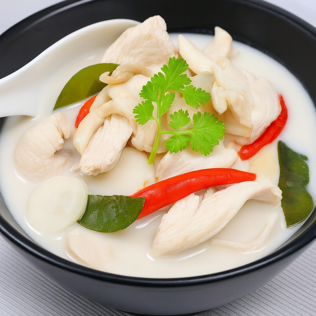 Tom Kha – aromatische Suppe mit cremiger Kokosmilch, feinem Zitronengras und duftendem Reis. Leicht würzig, erfrischend und exotisch – ein thailändischer Klassiker.